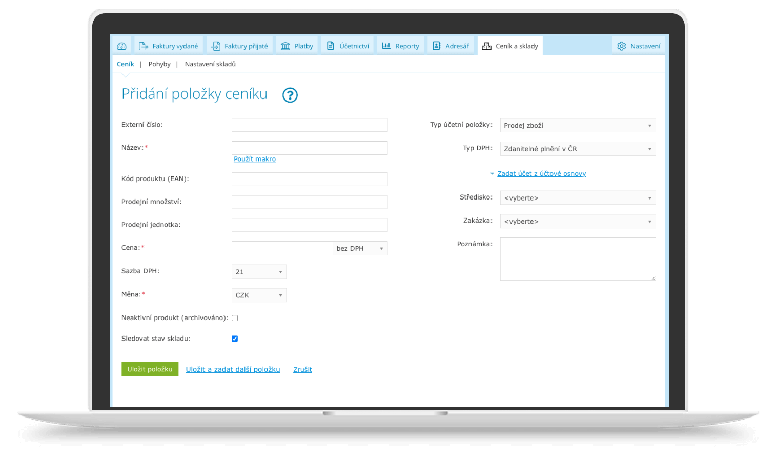 Všechny funkce ceníku a skladové evidence jsou dostupné také přes naše API. Toto umožní snadné propojení s vaším e-shopem nebo aplikací.