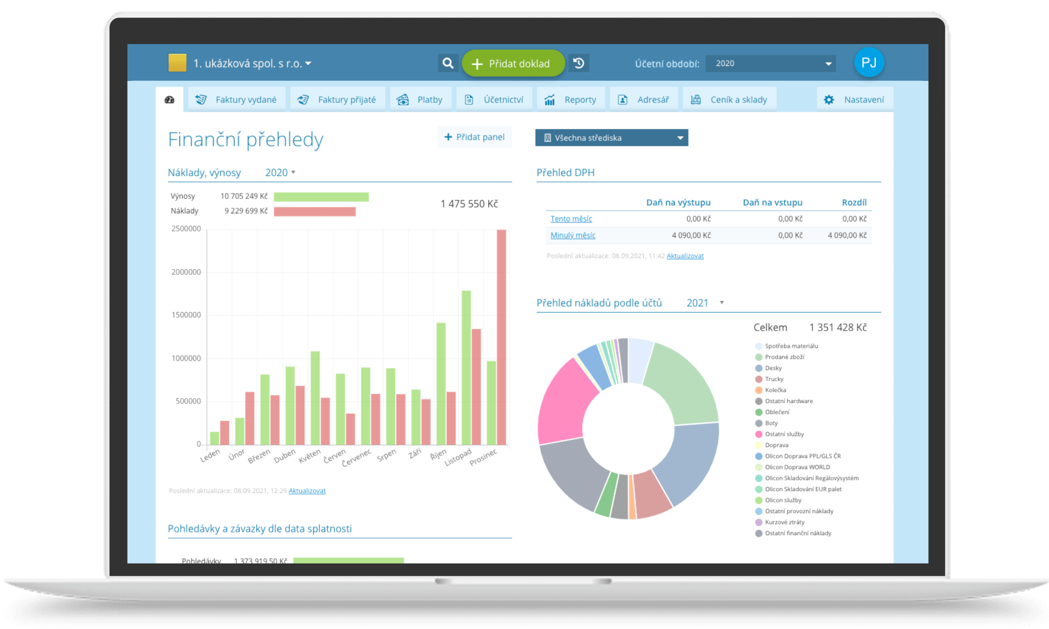 V aplikaci si můžete snadno vygenerovat potřebné účetní a manažerské reporty za vybraná období.
