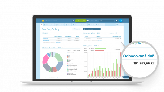 Na úvodní stránce také sledujete stav výše daně z příjmu, která vám vzniká v daném roce.