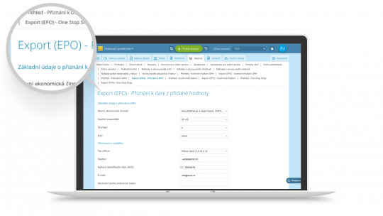 Jako plátce DPH potřebujete na finanční správu odesílat Přiznání k DPH, Kontrolní hlášení, Souhrnné hlášení a Daň z příjmu právnických osob. V iÚčtu si vygenerujete elektronická podání a můžete snadno podávat daně elektronicky přímo na daňovém portálu finanční správy a nebo je odeslat pomocí datové schránky. Ve zkratce – nahrajete vygenerovaný XML soubor na daňový portál a odešlete jej správci daně. Reporty EPO jsou dostupné od tarifu Pokročilý.