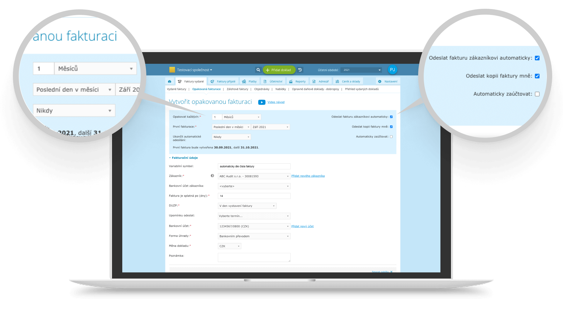 Odesíláte svému zákazníkovi opakovaně každý měsíc stejnou fakturu (pravidelná faktura), například za pronájem prostor? iÚčto má pro toto skvělé řešení – je jím funkce Opakovaná fakturace. Opakovaná fakturace šetří váš čas a paměť. S touto funkcí vždy vystavíte vaše faktury včas a správně. Vystavení dokladu za vás udělá iÚčto automaticky.